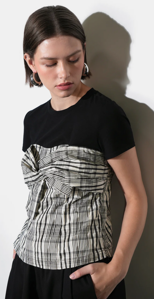 Nadia Knit Combo Twist Front Top in Black and Ivory