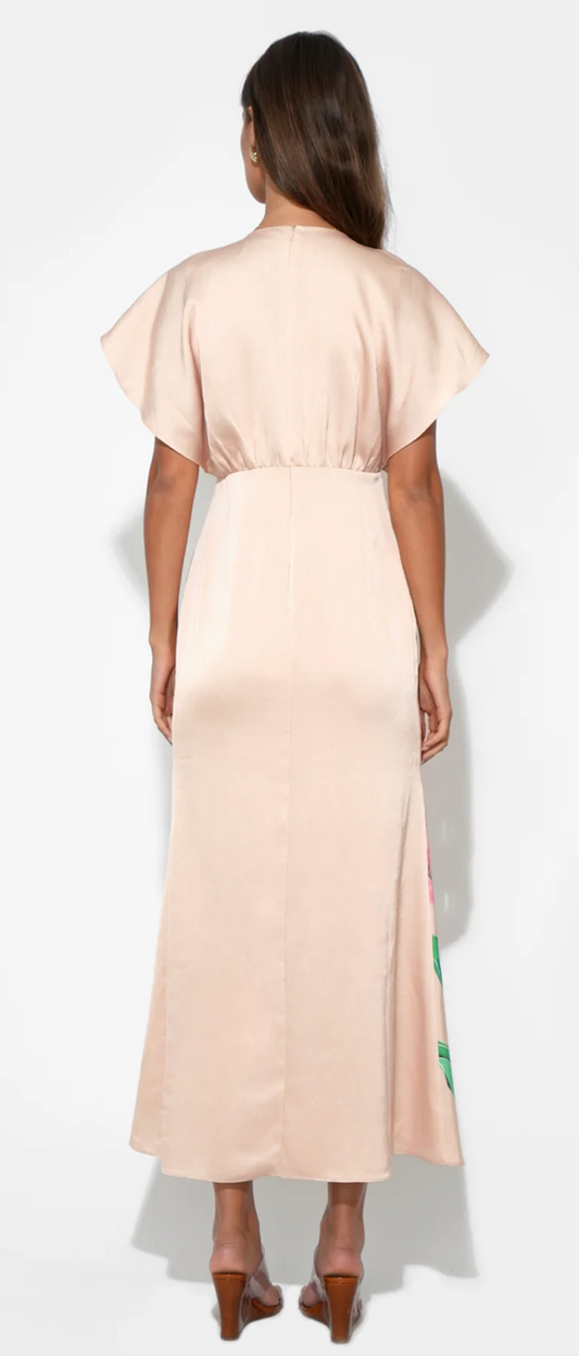 Madelyn Flutter Sleeve Large Floral Midi Dress in Floral Print
