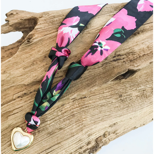 Prism Pearl Heart on Scarf Necklace
