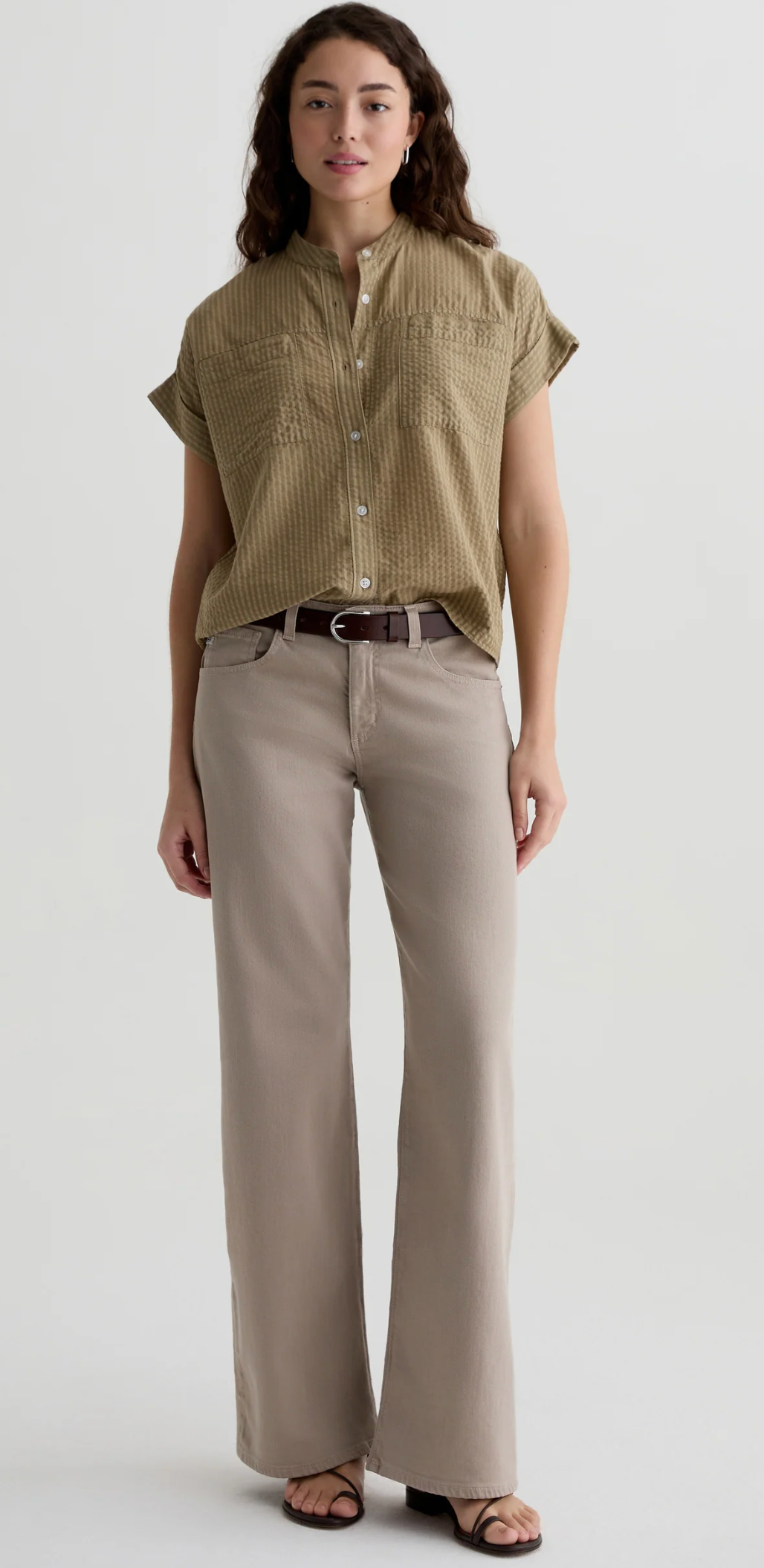 The Adria Jean is a low-rise, wide-leg jean made of premium Japanese Comfort Stretch. This five-pocket style fits loose through the legs, designed with a relaxed fit through the legs and puddle at the hems.