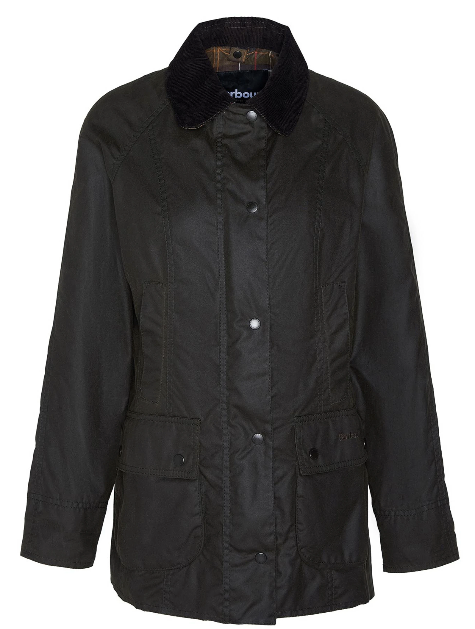 A true icon of the British countryside, the Barbour Classic Beadnell Wax Jacket is based on the legendary Bedale, updated with a new cut and seaming to create a more feminine silhouette with a timeless Barbour feel. Crafted with a Sylkoil waxed cotton outer and a cotton lining carrying our signature tartan for the quintessential Barbour look, it's ideal for year-round wear and can be layered up or worn solo depending on the season. It features a traditional corduroy collar, storm fly fastening at the neck and a hard-wearing zipper with the addition of a snap fastening storm flap to keep the cold at bay. Classic details include handwarmer pockets lined with moleskin and our distinctive rounded lower bellows pockets with embroidered branding.