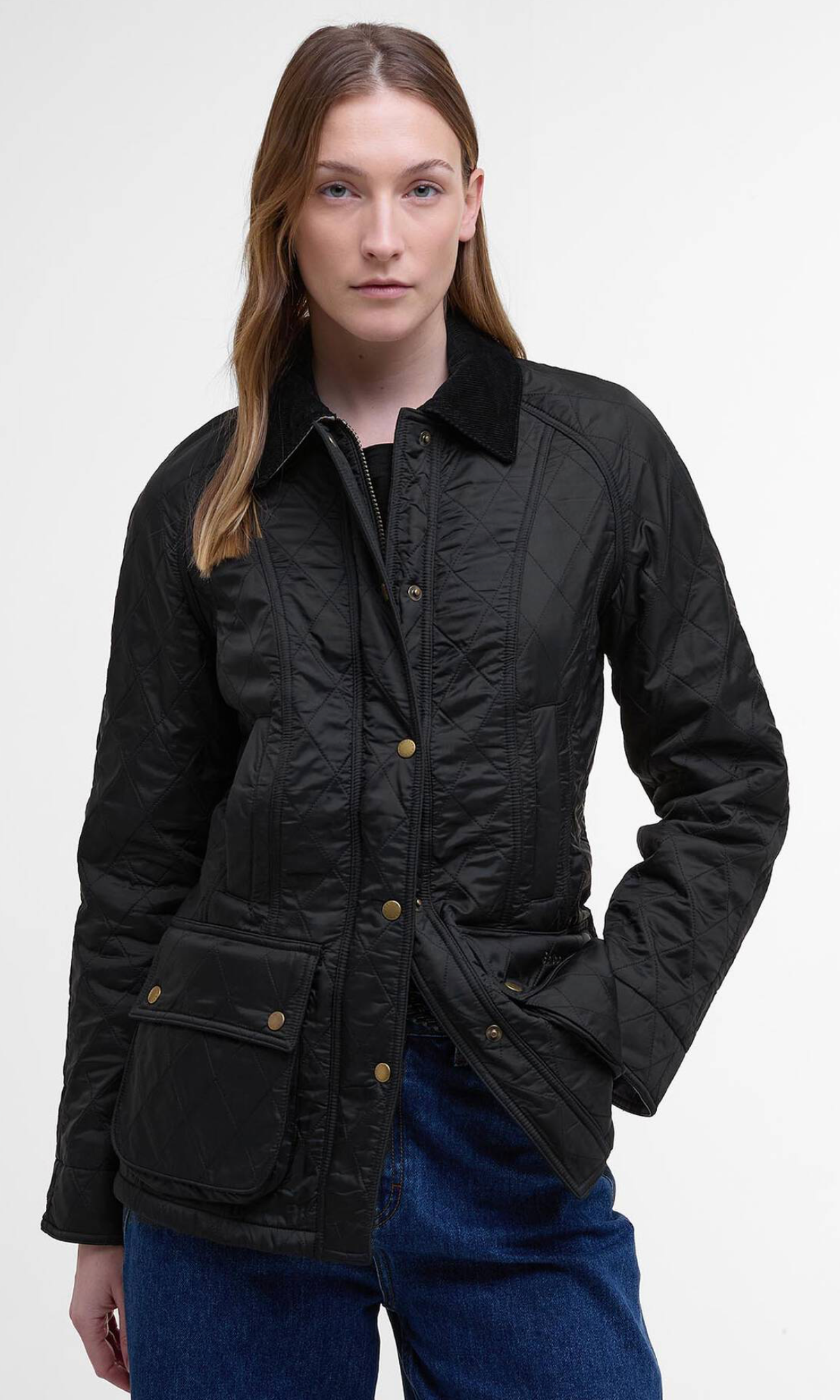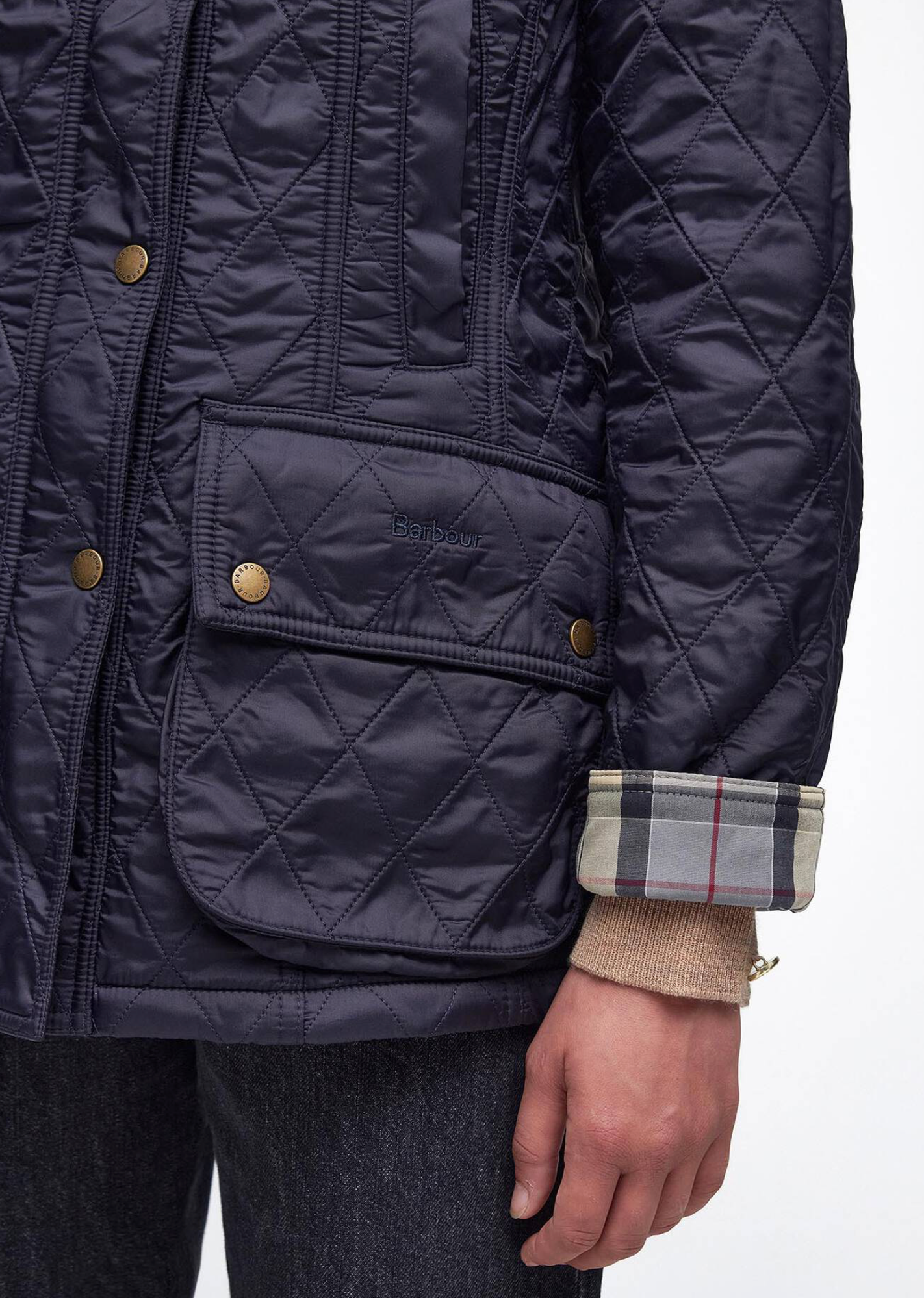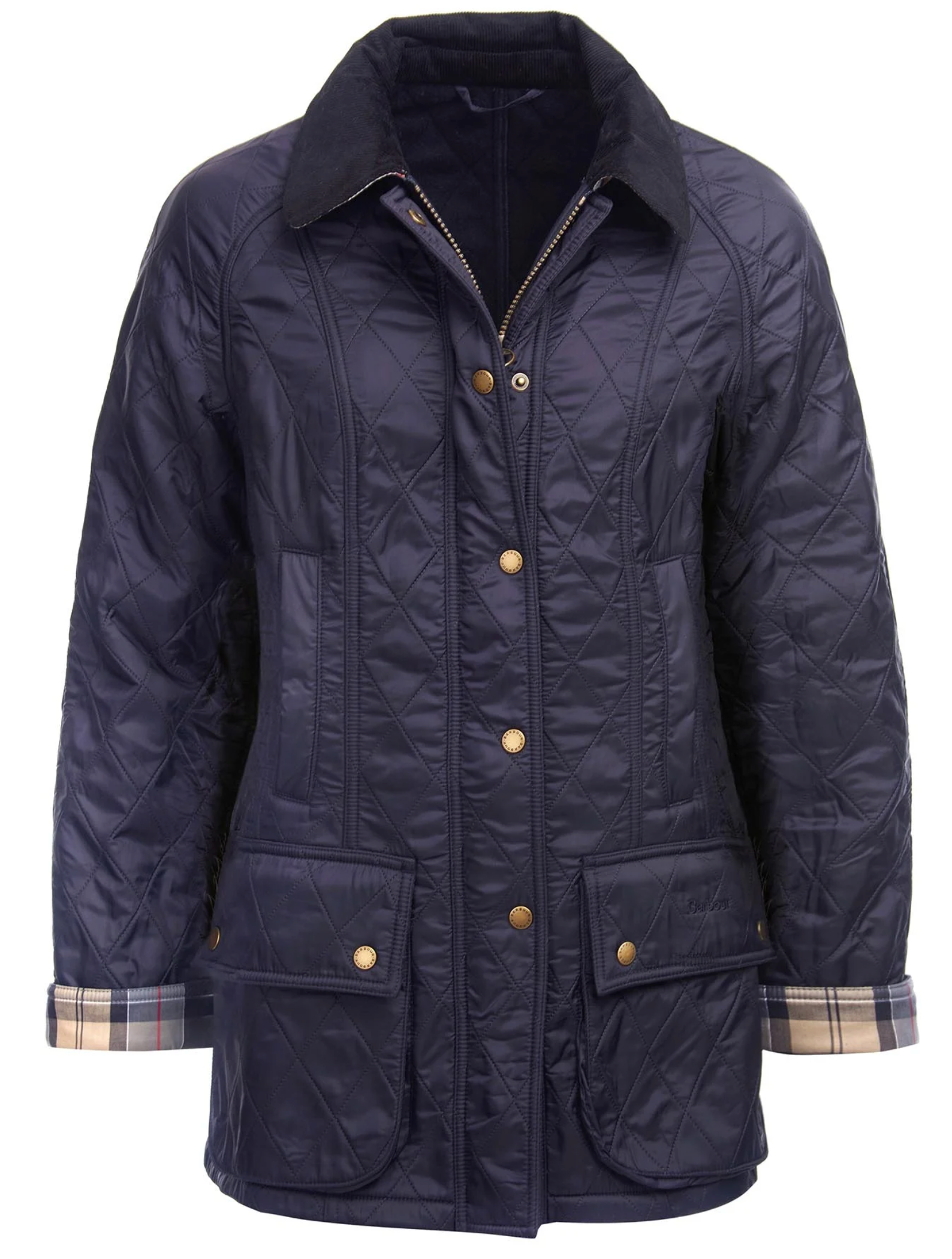 With styling based on the iconic Barbour Beadnell, this luxuriously warm jacket is constructed with a diamond-quilted outer and a super-soft fleece lining. Handwarmer pockets add extra winter practicality, while a contrast cord collar completes the signature look.