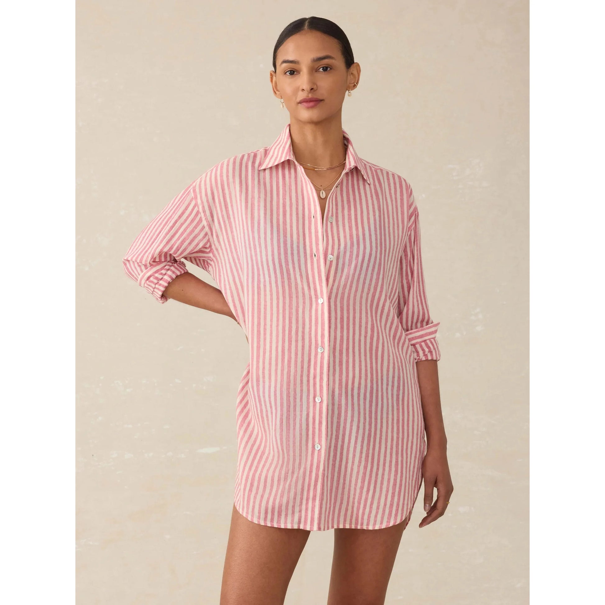 Soft and breathable with that perfectly lived-in feel, this shirtdress is designed with a relaxed fit that’s easy to throw on and still look pulled together. Wear it open over a swimsuit, buttoned up with sandals, or belted for a little shape—it’s the kind of piece that goes wherever the day takes you