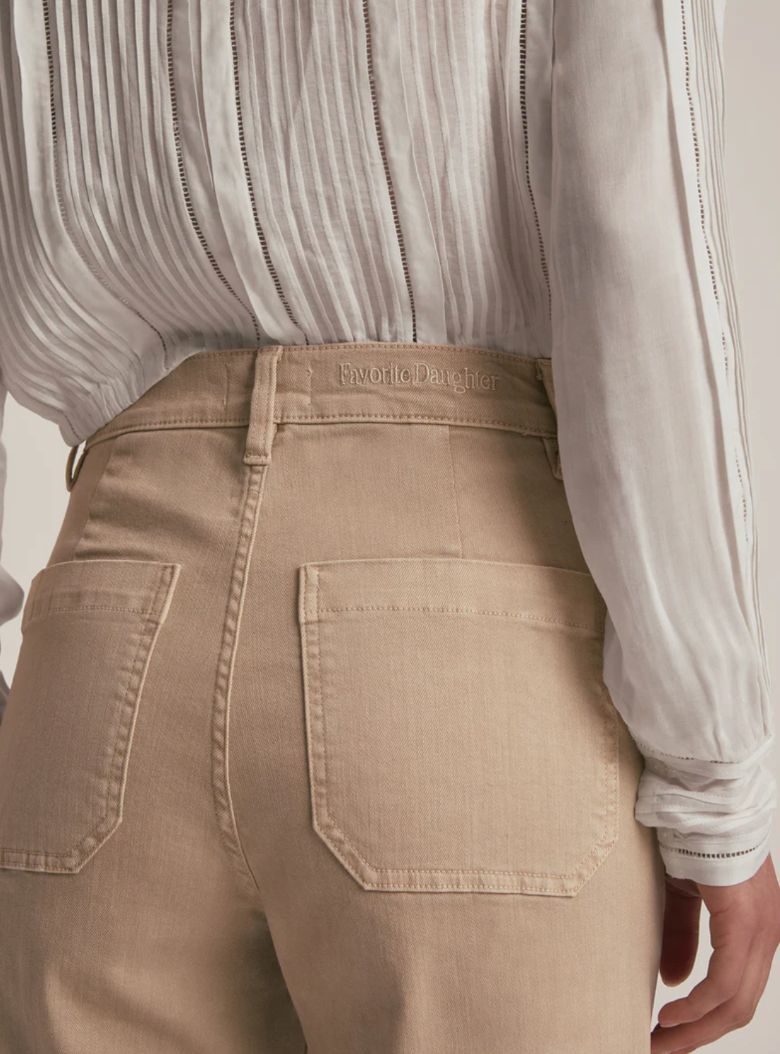 The relaxed wide-leg, wide-hem, 11.75" super high-rise Mischa Utility makes a statement in Newport—our comfort-stretch natural denim with bluish-grey pinstripes. These jeans feature a 29.5" inseam, utility pockets on the front, back, and sides, with Favorite Daughter embroidery at the back waistband (of course). Our favorite way to wear The Mischa Utility? Style it as a set with The Robert Jacket.