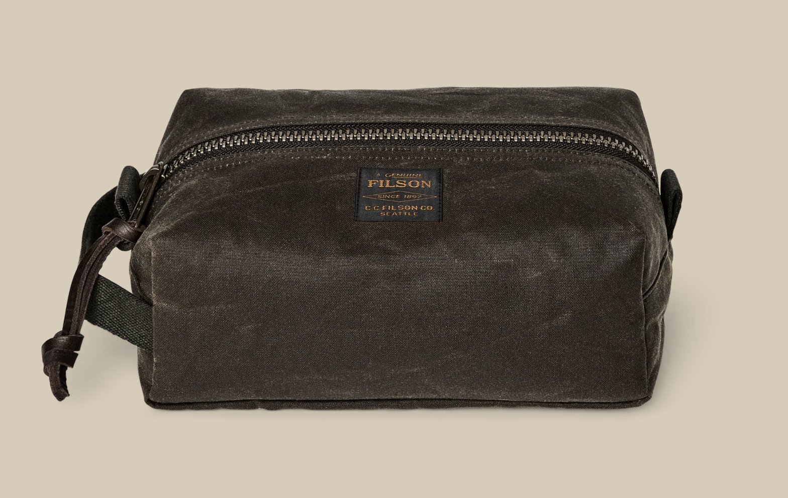 Our Tin Cloth Travel Kit is a lighter-weight dopp kit that carries travel essentials for a lifetime of journeys. It's made with our iconic waxed canvas that's protected foresters, sportsmen, and tradesmen from harsh weather, brush, and abrasion for more than a century. It's fully lined with nylon to protect contents, and secures with a heavy-gauge metal YKK® zipper. The cotton-webbing grab handle doubles as a loop for hanging. Bridle Leather zipper pull.