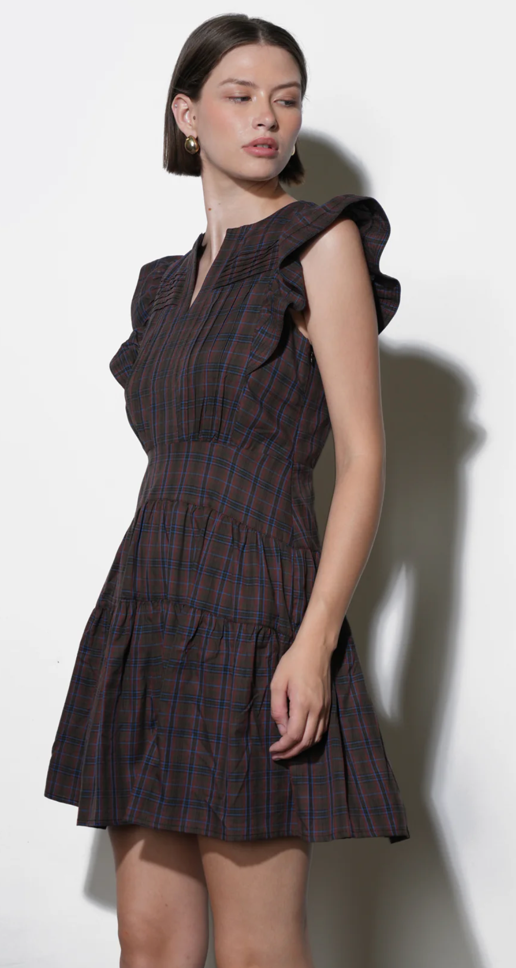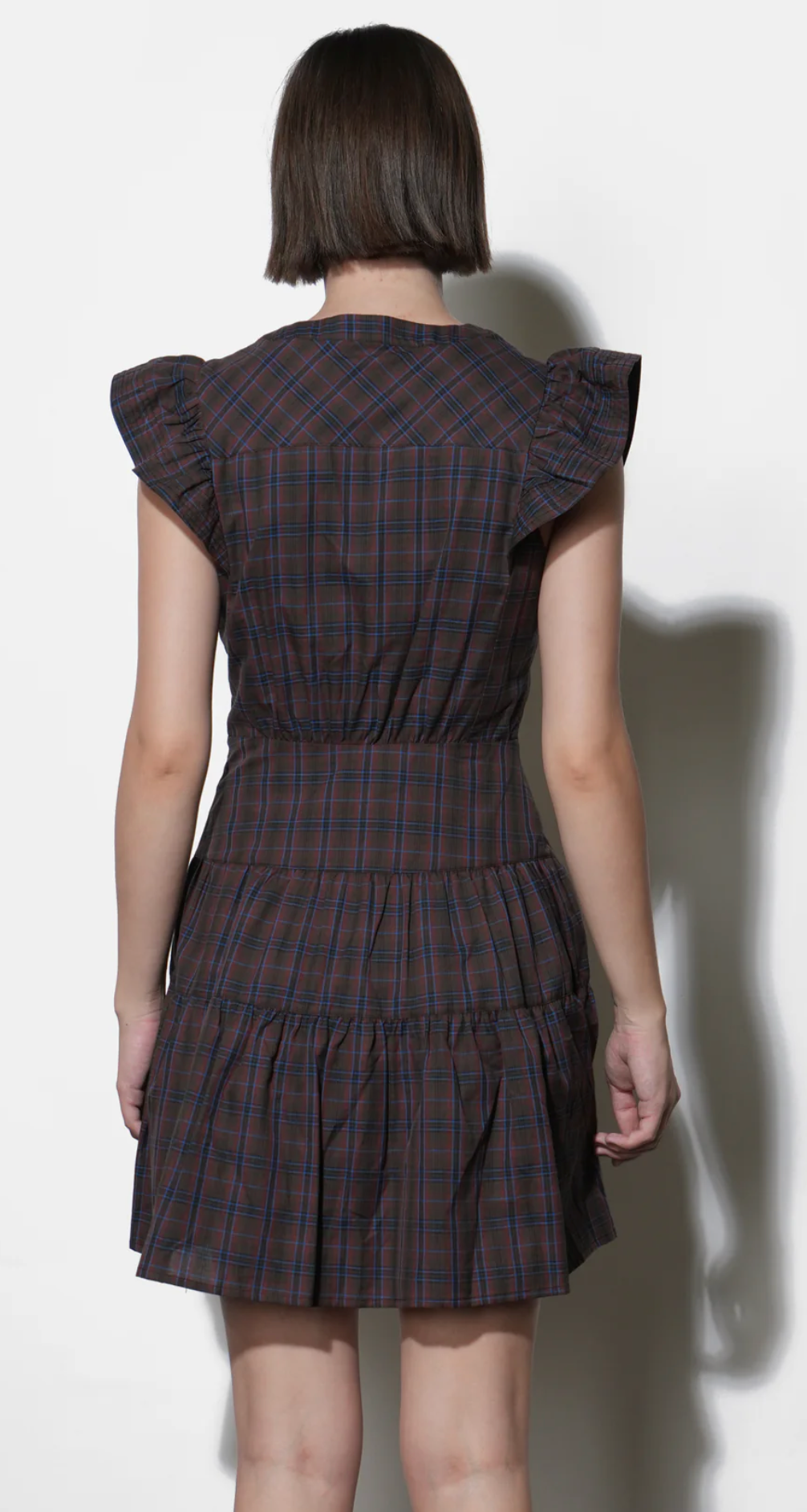 Marlo Plaid Ruffle Sleeve Mini Dress