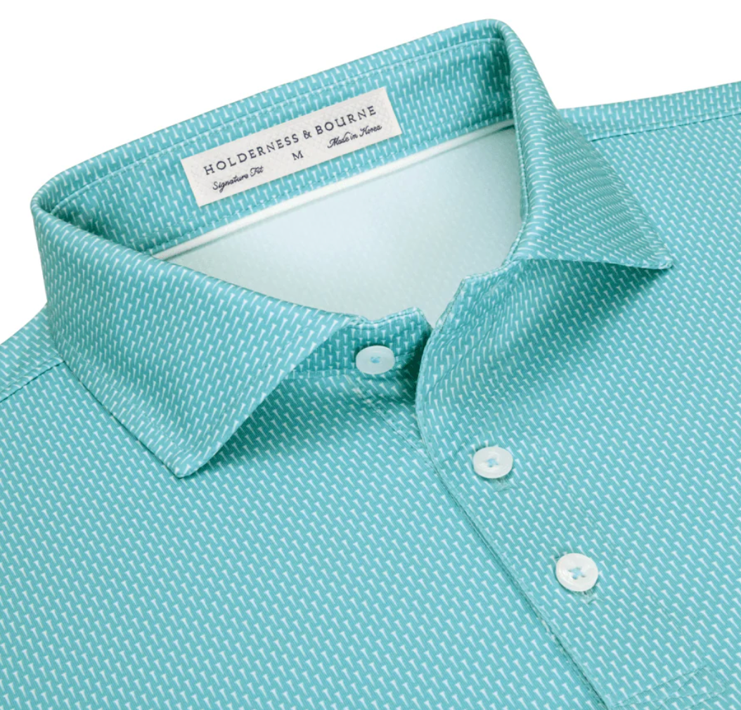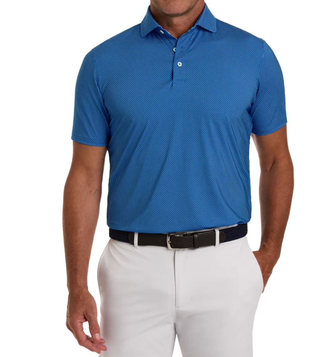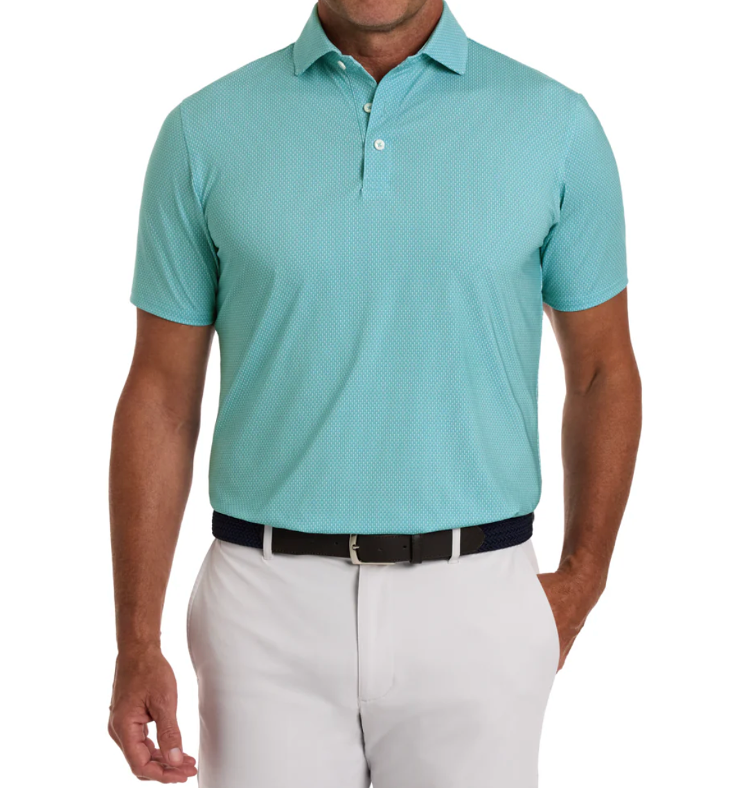 Tee up a polished look with The Hicks and its stylish geometric golf-tee pattern. Crafted from our stretchy, super-soft performance jersey, this polo shirt helps you make every swing count with excellent moisture wicking, breathability, and UPF 50+ sun protection. Finished with our structured spread collar and signature fit.