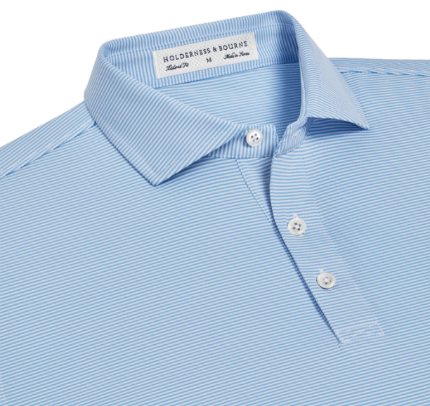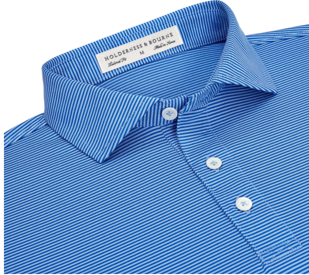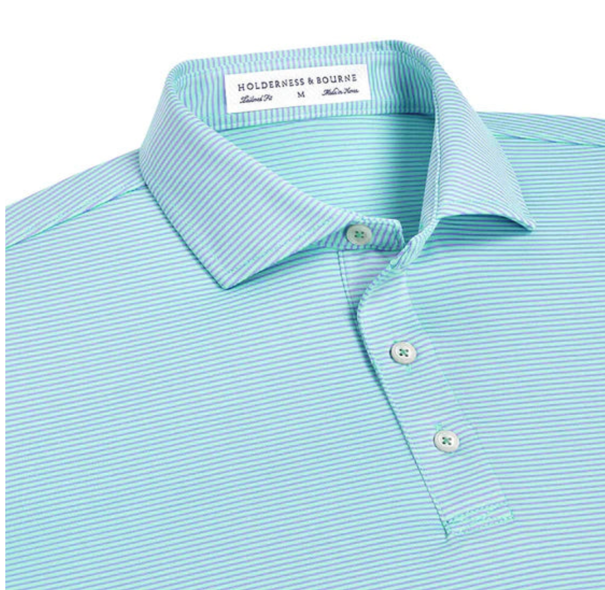 The Perkins features a modern two-color feed stripe pattern for understated good looks. Lightweight yarn-dyed performance fibers offer excellent hand feel and warm weather performance.