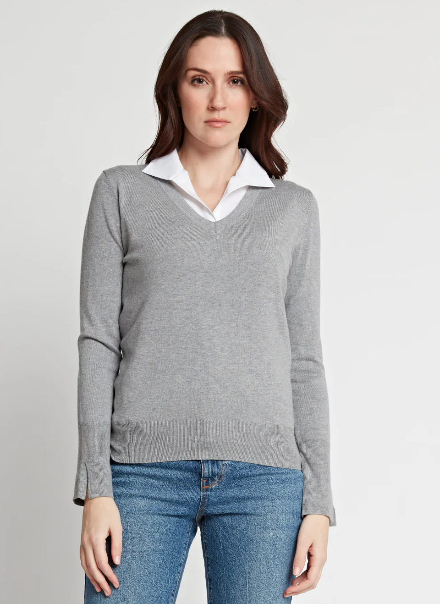 Brand new concept in layering for the sweater season: wear the Emma under your favorite sweaters, you get to pop the wing collar without having to fuss with the bulk of sleeves.