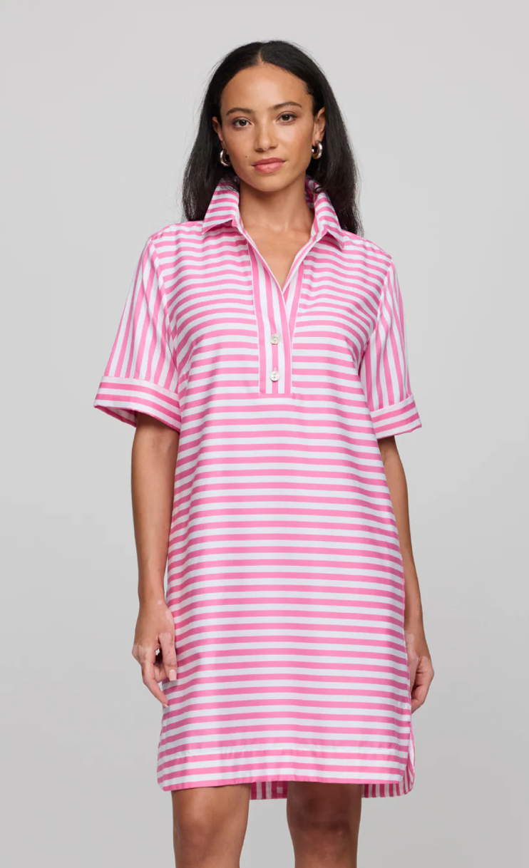 Looking forward to brighter and warmer days, this stripe and color coordinated gingham Aileen dress in short sleeves is your perfect companion.