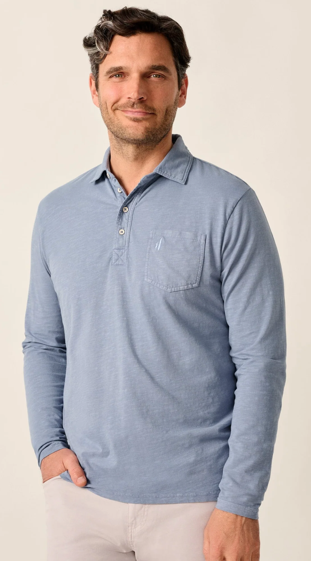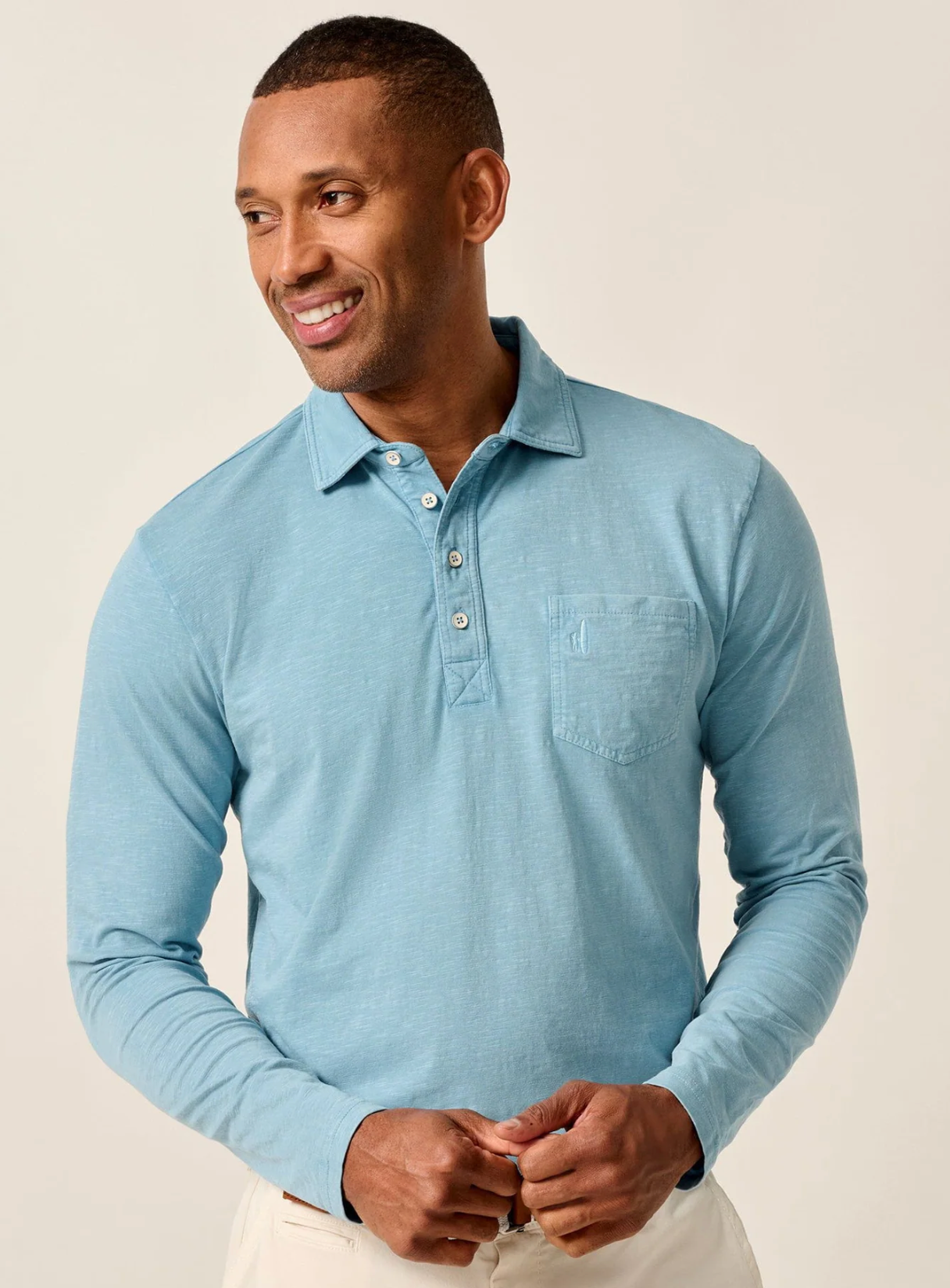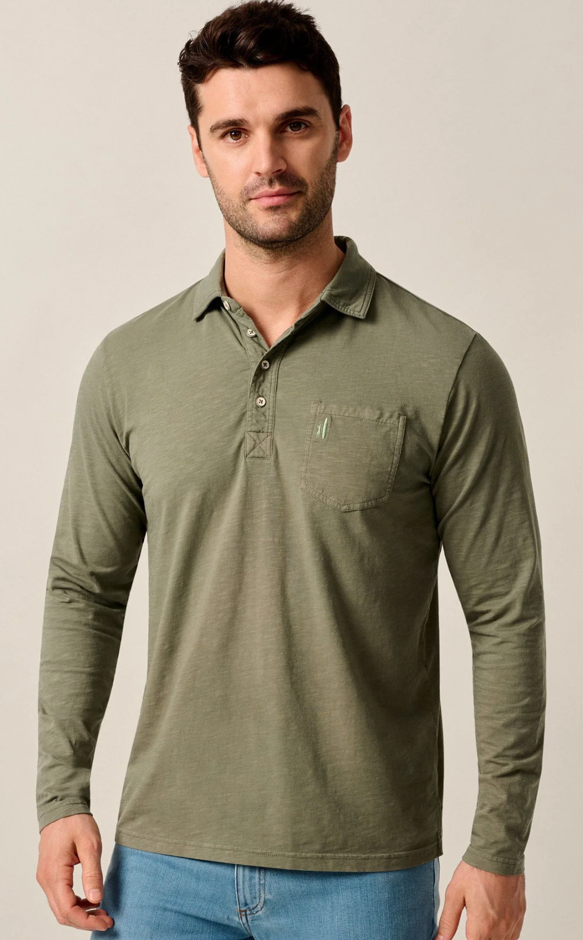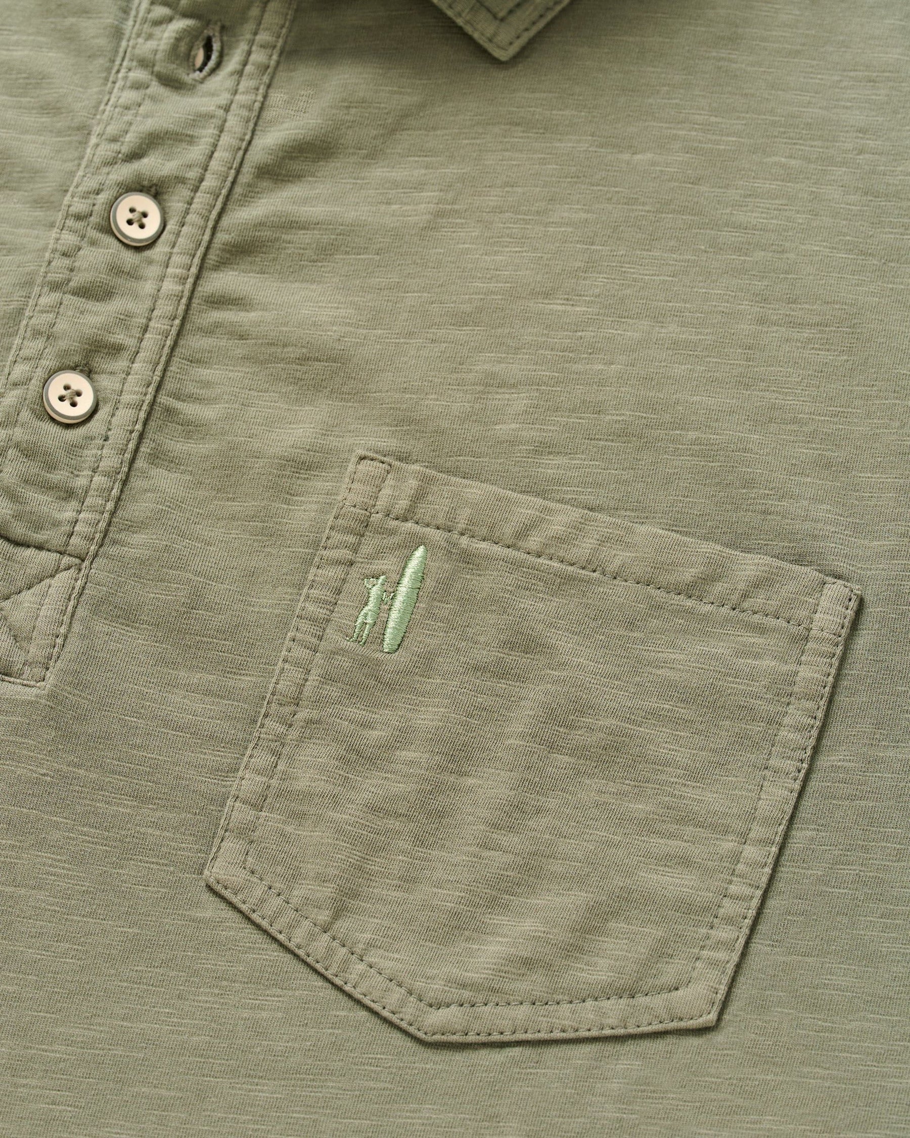The Original Polo is made with the same details as the one we launched the company with a couple updates. While the four-button placket and pocket remain the same, the fabric has been updated with some stretch and a garment-dye process that creates the perfect fade. And as part of our Hangin' Out collection, this shirt is cut 2" shorter than the rest of our polos to look it's best untucked.