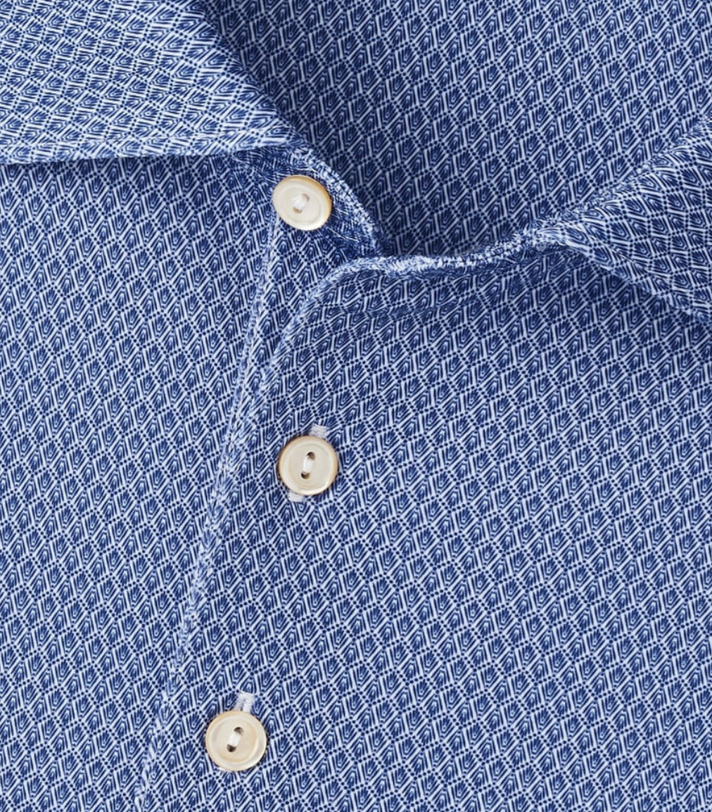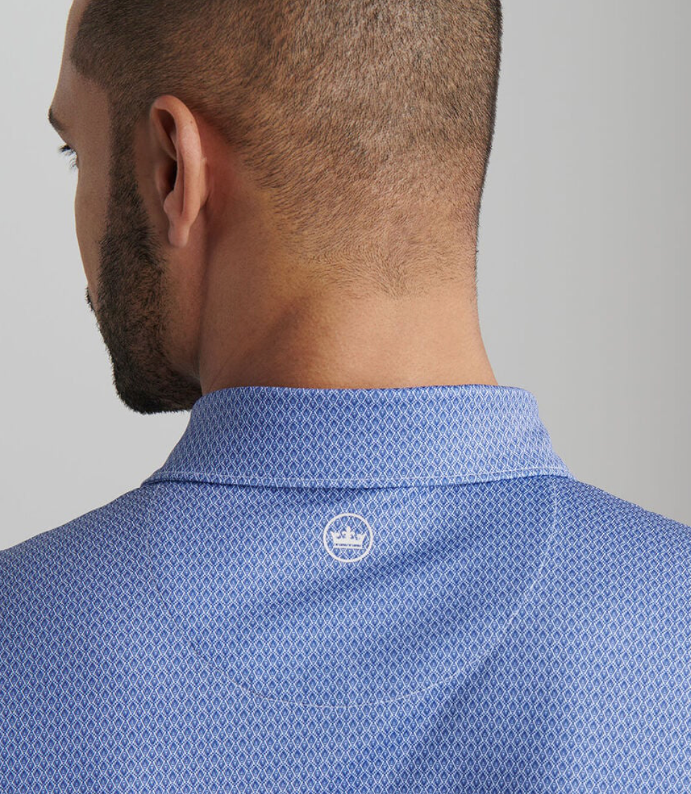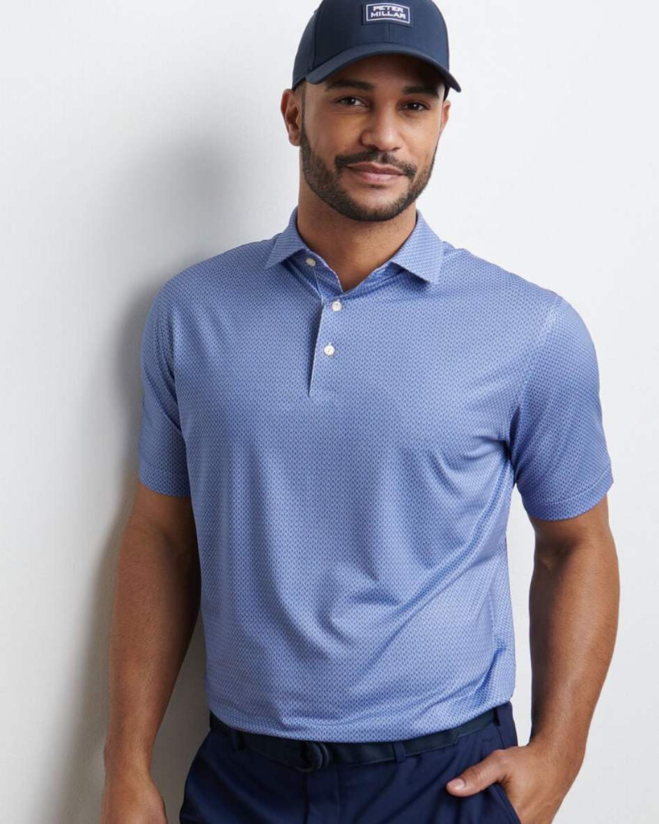Our Summer Comfort jersey polos are gold standards for softness and exceptional performance. These are packed with four-way stretch, wicking and UPF 50+ protection in our signature Summer Comfort fabrication. This shirt features a custom-designed art deco print for added style. Finished with a spread collar and three-button placket.