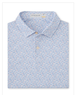 This Featherweight polo packs all the performance punch of your go-to golf polo at half the weight of your favorite T-shirt. The super lightweight performance fabric stretches four ways for full range of motion, wicks moisture and provides UPF 50+ sun protection. This polo features a custom-designed dice print for added style. Finished with a Sean self-fabric collar and two-button placket.