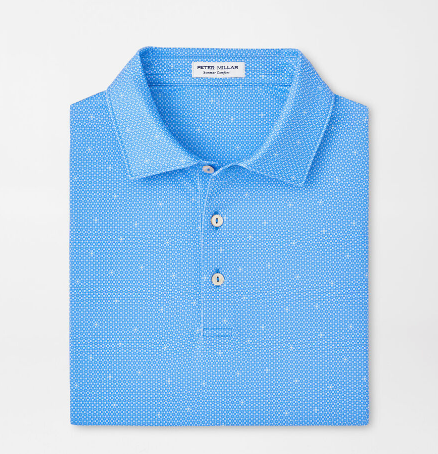 Summer is all the time in our performance jersey polos. These are packed with four-way stretch, wicking and UPF 50+ protection in our signature Summer Comfort fabrication. This polo features a custom-designed geometric print. Finished with a spread collar and three-button placket.