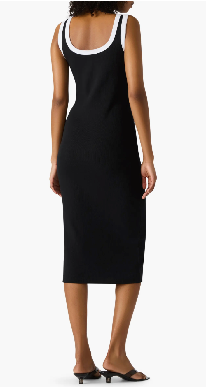 Give your curves a hug in this ribbed body-con dress outlined with contrast binding that creates an eye-catching look.