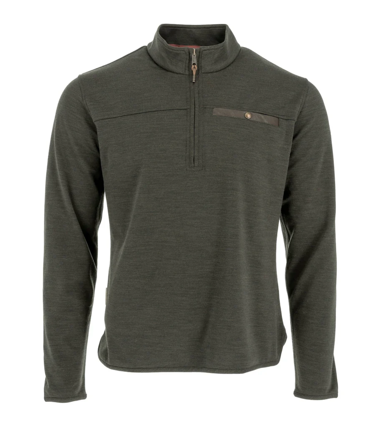 Our Tucker Three-Season Fleece Quarter Zip combines the natural performance of wool with the easy care of synthetic materials. The result is a warm layer with a refined, classic look for the outdoors and everyday. The soft, low-bulk synthetic knitted fabric has four-way stretch and thermal insulation. A short standing collar keeps out the cold. This men’s quarter zip fleece has a quarter-length center zipper and a chest pocket with a spring snap closure. The Tucker Fleece Quarter Zip is complete with a nod to our heritage: contrast neck piping inspired by Alabama red clay.