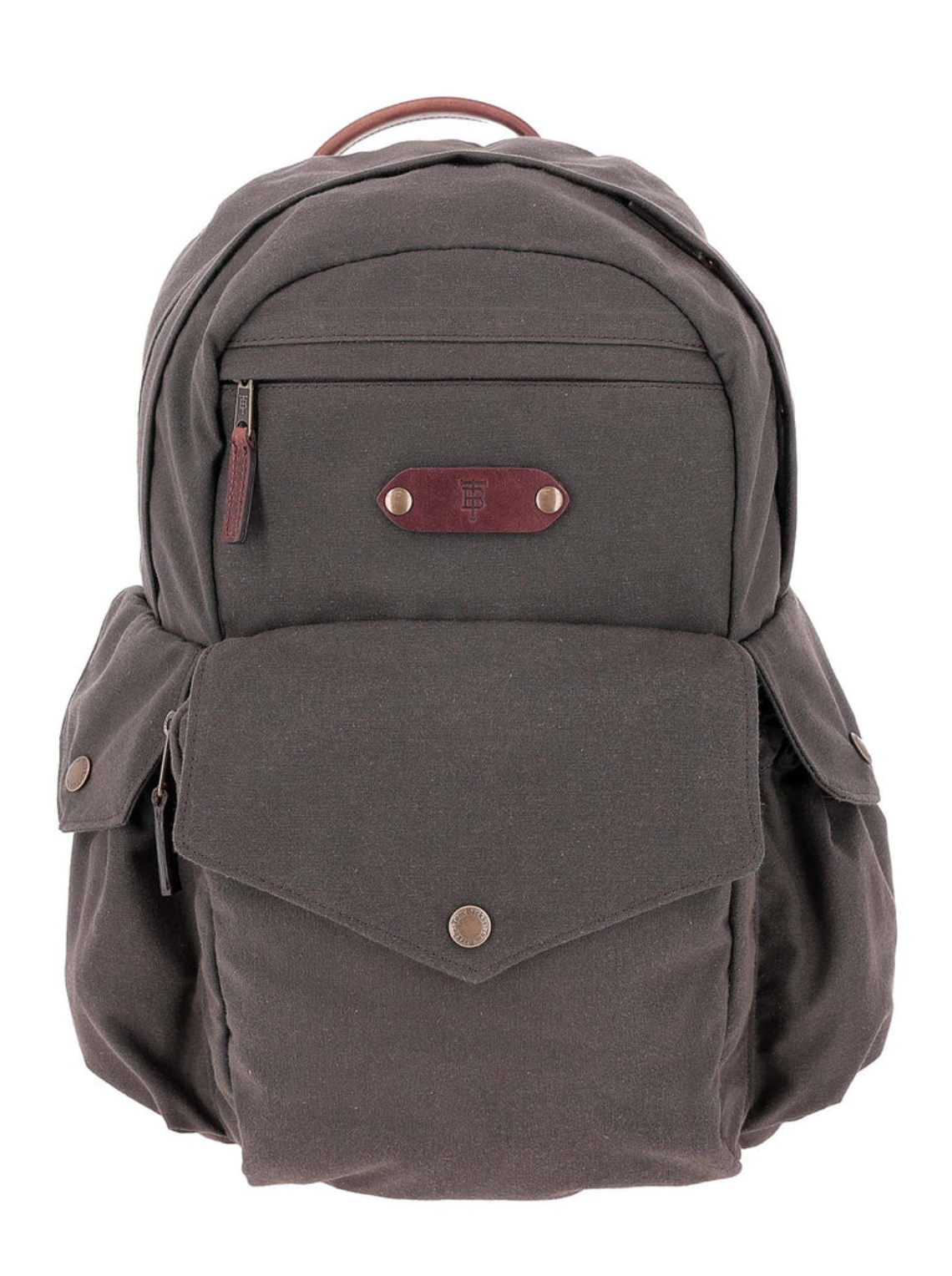 This Backpack is designed to be the perfect everyday carry pack. Comfortable and functional, this waxed canvas Backpack has a spacious main compartment with a padded laptop sleeve to hold up to a 16-inch laptop and slip pocket. Our waxed canvas Backpack has a large front pocket with a weatherproof flap, zippered closure, interior slip pockets, and a separate zippered pocket with exterior access. Two exterior side pockets are large enough to accommodate most reusable water bottles, securing with an elastic cinch and snap flap closures when holding smaller items. Complete with adjustable, padded shoulder straps, padded mesh back, and luggage strap that secures the pack to our Canvas Rolling Carry-On. Our Backpack is built with our Field Canvas, a unique fabric, produced to Tom Beckbe's specifications, that provides the classic look and feel of waxed cotton canvas with the durability and performance of 1000 denier nylon.