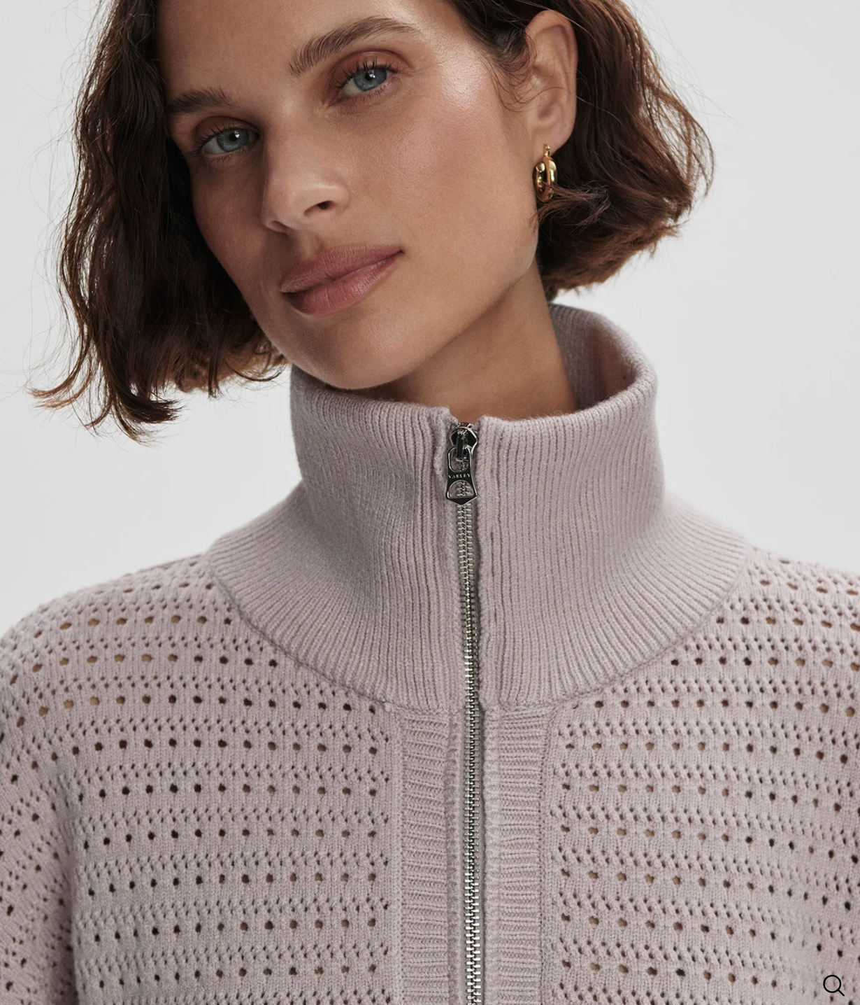 "Textured for an elevated look and feel, the Darla knit is made from super soft fabric and detailed with a half-zip closure. Featuring our signature exaggerated neckline, it's finished with ribbed trims for an added touch of structure and style."